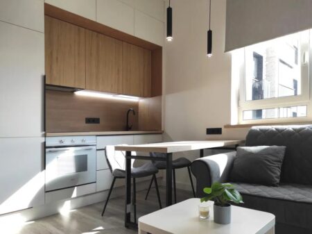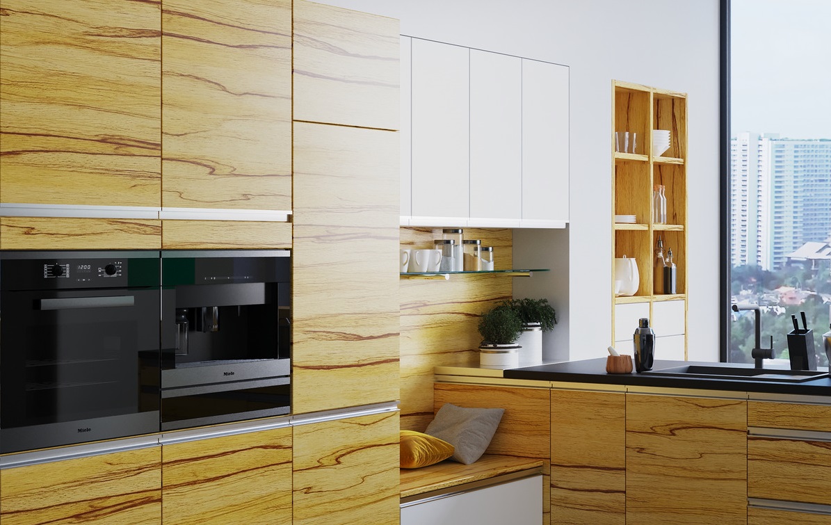 В числе трендов кухонного дизайна на 2024 — минимализм в декоре, отсутствие лицевой фурнитуры, применение современных фасадных решений.