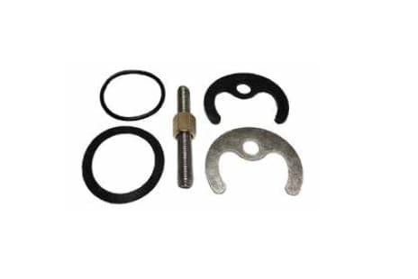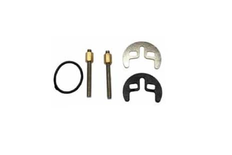 У смесителя с полукруглым изливом круглого сечения Гемма — 2 монтажные шпильки и 1 уплотнительное резиновое кольцо. У смесителя Мицар — 1 шпилька и 2 уплотнительных кольца-прокладки. К обеим моделям идут гибкие шланги для подключения к водопроводу. В обоих комплектах также стальное прижимное кольцо и фигурная прокладка совпадающей формы.