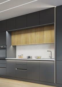 серая кухня с подсветкой