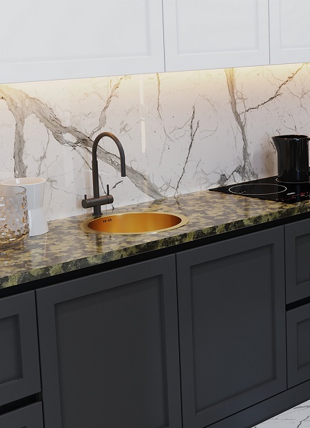 Мойки Sole и Romance в Складской программе представлены новым декором — Gold (матовое золото), а также уже привычными Satin и Graphite. В комплекте — сливная арматура из первичного полимера серого цвета. Каждая мойка упакована в индивидуальную картонную коробку с маркировкой, вложена в ложемент из ППЭ и мешок из нетканого материала, в чашу установлен картонный защитный вкладыш.
