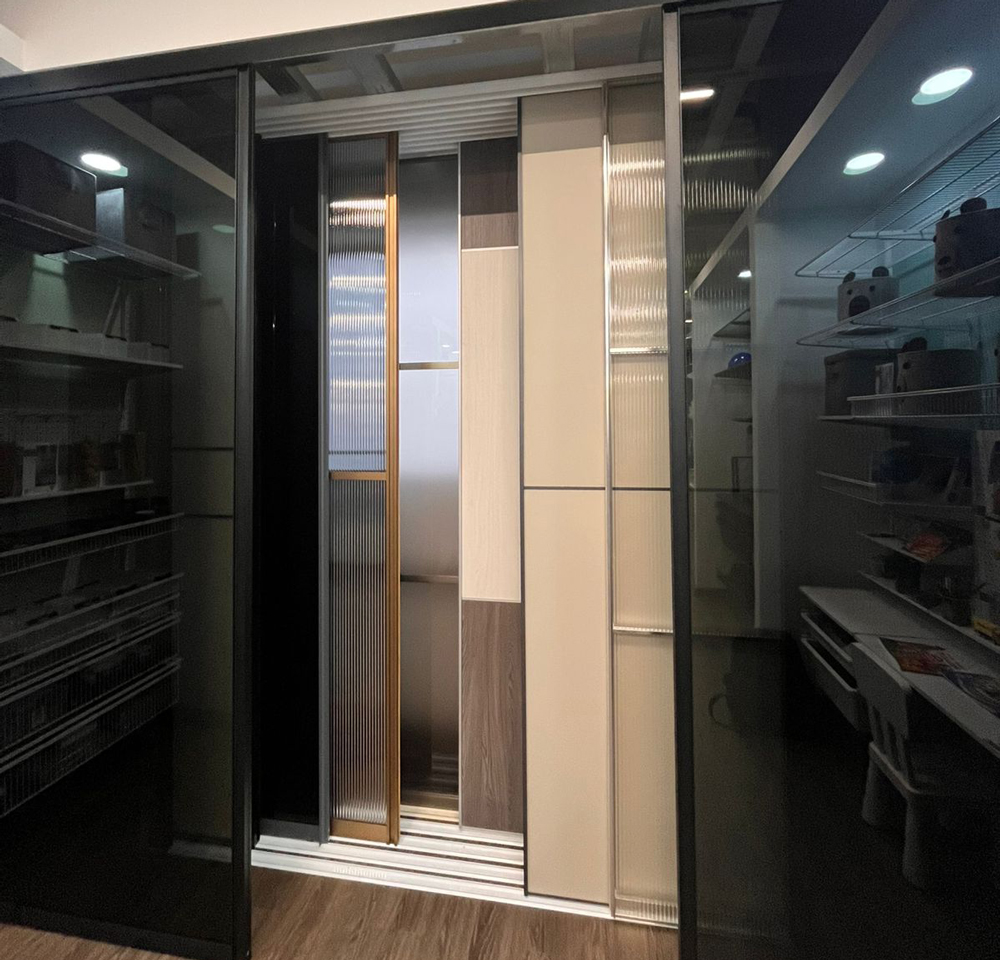 Формирование спроса — покупатель может наглядно оценить варианты наполнения дверей-купе и выбрать подходящий профиль в качестве главного акцента;