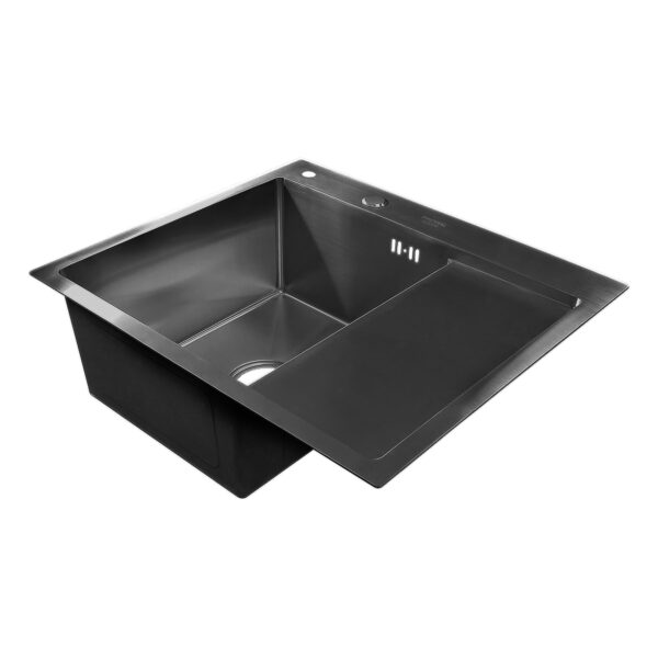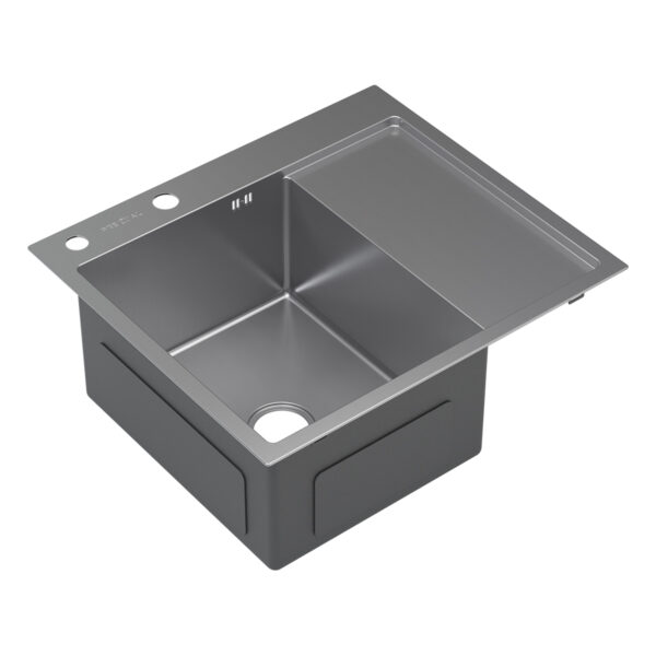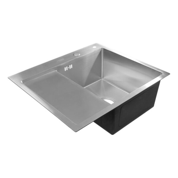 Кухонная мойка из пищевой нержавеющей стали марки 304 толщиной до 3 мм. Мойка прямоугольная с крылом, 580х510 мм, глубина чаши 220 мм, вес нетто 6 кг, вес брутто 8,7 кг. Расположение чаши с левой или правой стороны. Размер чаши 340х410 мм.