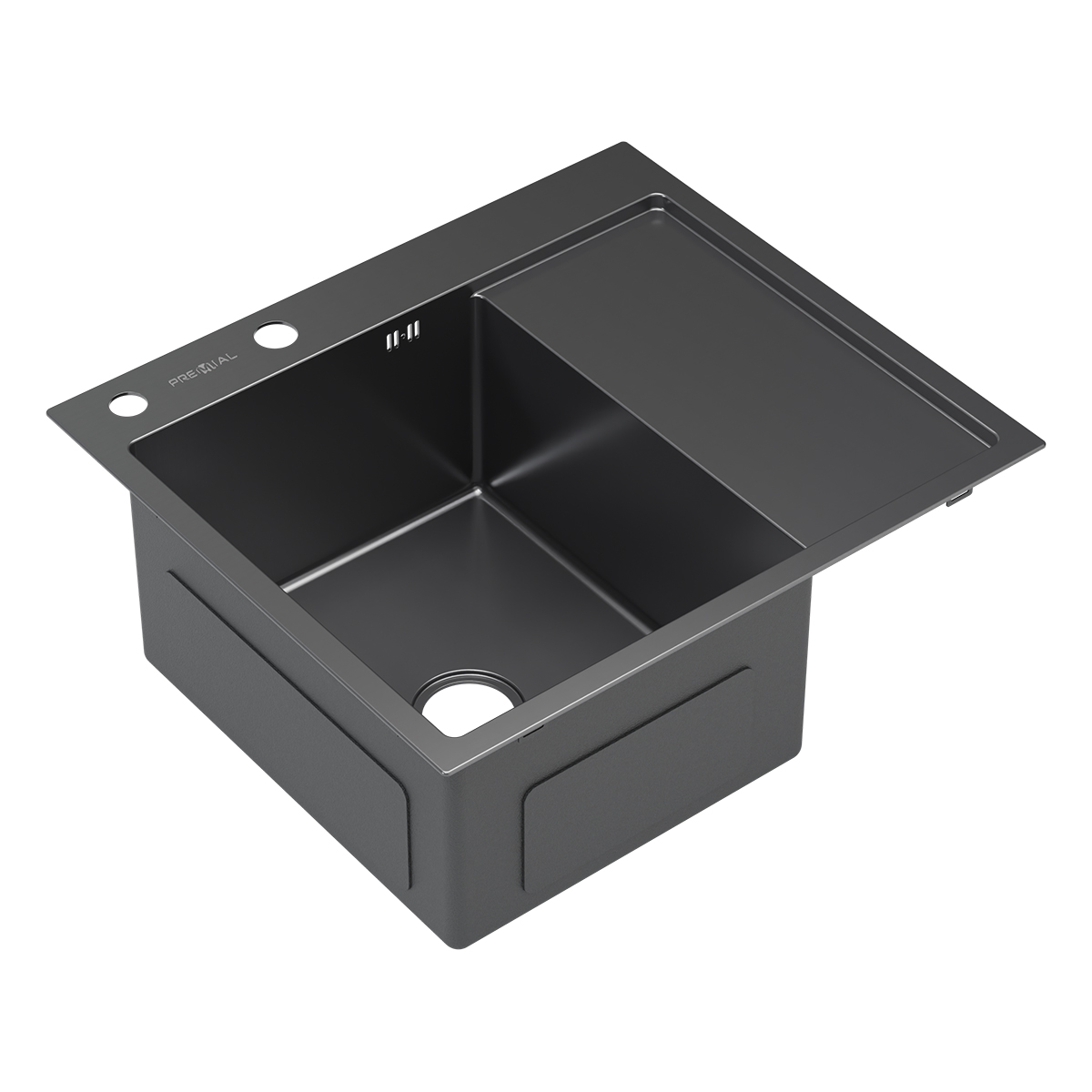 На крыле мойки — гравировка логотипа Premial® и марки стали.