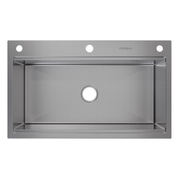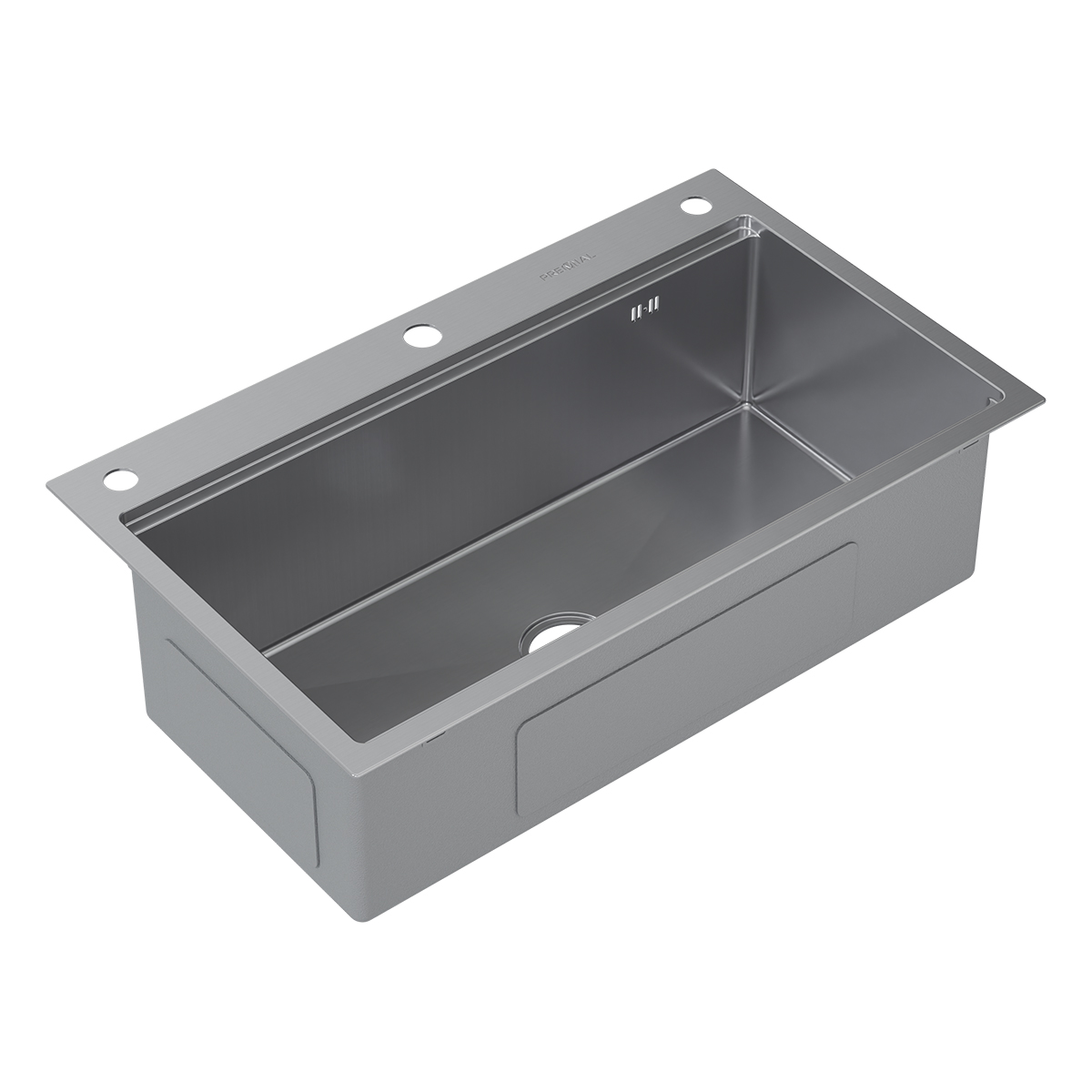 На крыле мойки — гравировка логотипа Premial® и марки стали.