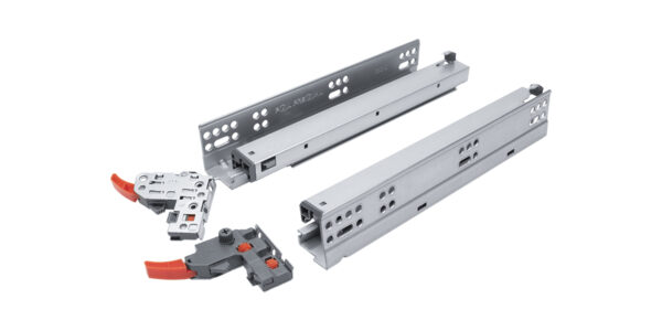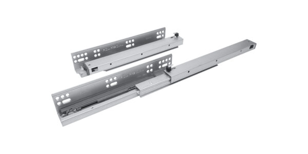 Арт. 033351-033356 Направляющие трехсекционные скрытого монтажа полного выдвижения с доводчиком и системой push-to-open. Предназначены для плитного материала до 16 мм включительно. В конструкции предусмотрен встроенный синхронизатор.
