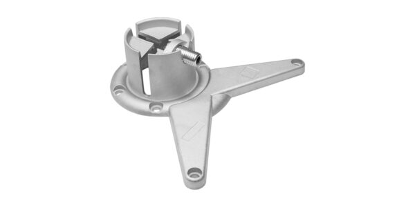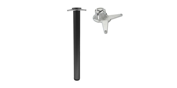 Опора комплектуется из трех частей: стальная труба в соответствующем покрытии, стальная крепёжная площадка типа «усы» и регулируемая по высоте полимерно-сотовая нижняя заглушка для трубы («основание») черного цвета.