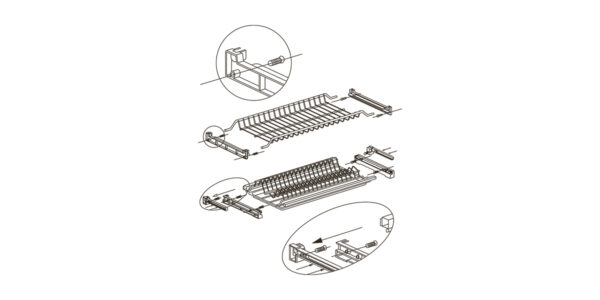 Возможность установки в шкафы как с дном, так и без дна благодаря прочному поддону в нижнем ярусе посудосушителя.