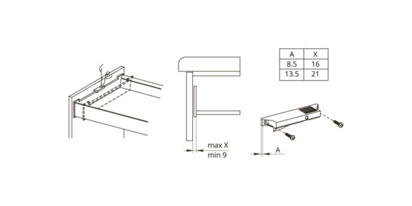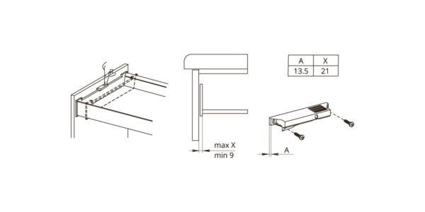 Арт. 030702 Ручка для фасада толщиной от 13.5 мм до 21 мм, предназначенная для соединения внутреннего фасада ящика Maestro с внешним.