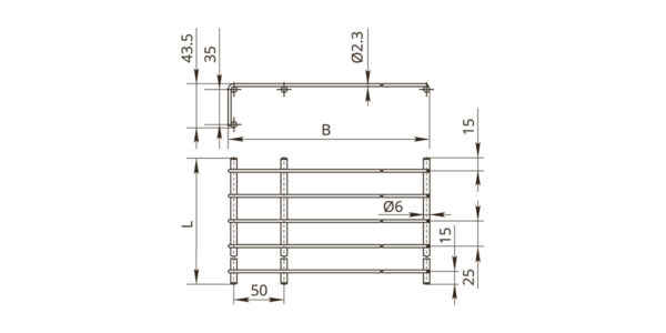 Внутренняя высота бортика — 35 мм. Ширина от бортика до дополнительного прутка ребра жесткости — 50 мм.